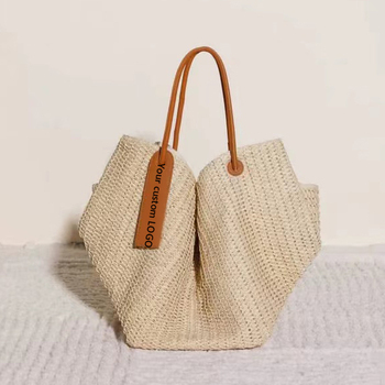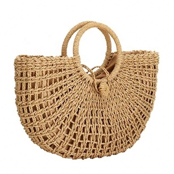 卸売女性夏天然ストローバッグストロービーチトートバッグ