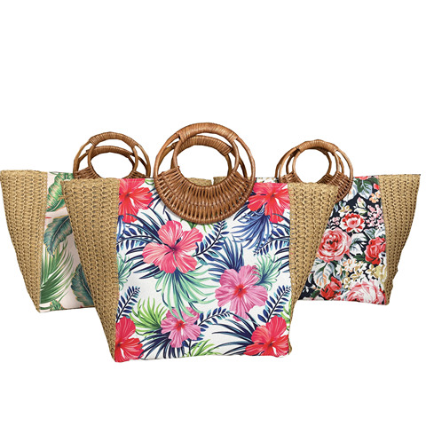 卸売新しい手作り織り紙ストローハンドバッグ竹ハンドルファッションスパンコール刺繍トートビーチバッグ防水財布